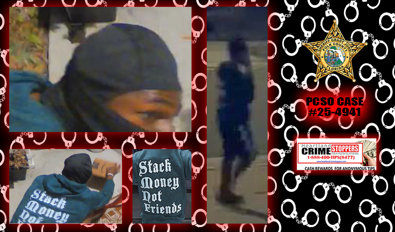 If you recognize this suspect or you have any information about the investigation, please contact Detective Ferguson at 863-678-4115 or HFerguson@polksheriff.org.
